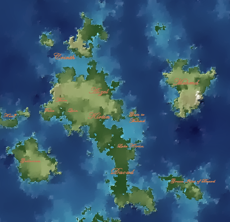 This series of islands well beyond the Sea of Gallinor is where the dragons and their friends originate. A land of bewildering magic there are colleges and schools to advance the art of the arcane. Only the Oriq, outcasts, are believed to not be able to channel the mystical into reality.